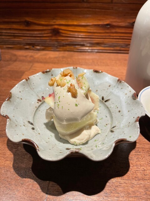 八朔と旬菜の白和えです。女将さんが秋田のウドとか4種類ぐらい説明してくれたけど忘れてすみません。ててての和えものは必ず頼むほど魅力です