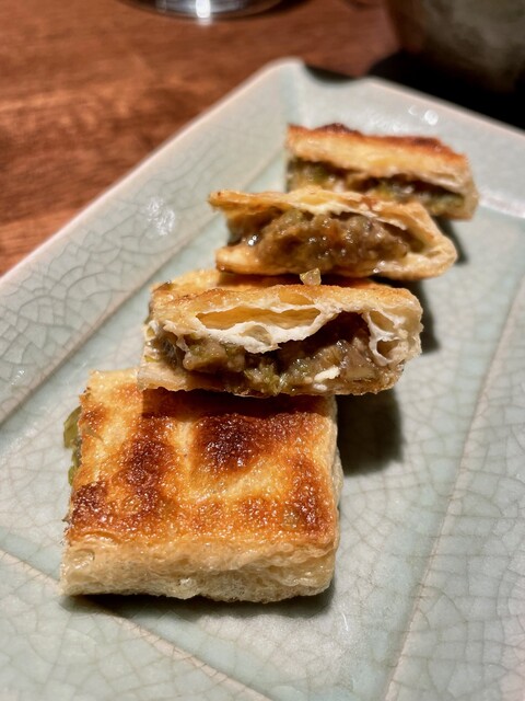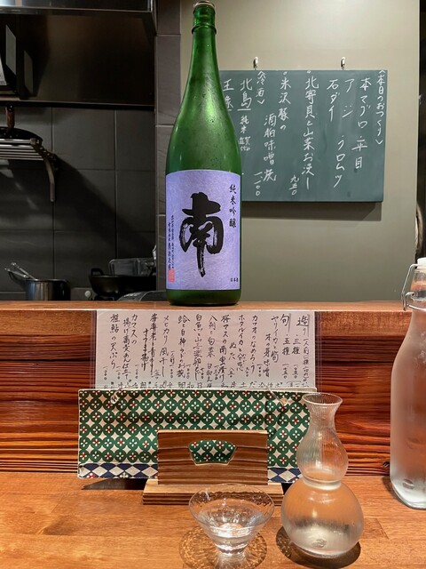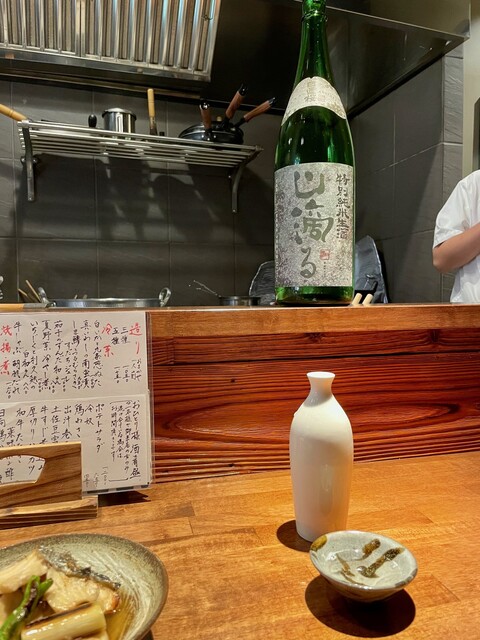 飲み慣れた新潟の辛口ではなく山形の辛口にまず驚きお燗だとよけいに。白むくの徳利と同じドッシリ構えた味わいです