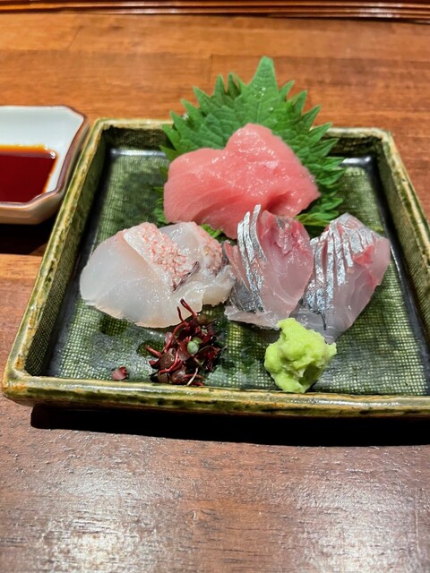 造り3種を頼むと前回と同じ大体このお魚たち本マグロの脂ノリのウマさにビックリしまっせ