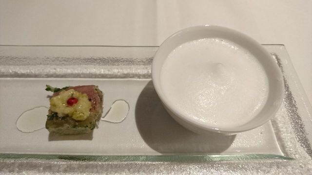 アミューズ:あさりのロワイヤルムース、豚肩塩漬けゼリー寄せ