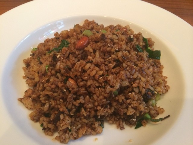私は久しぶりに炒飯を頂きたく、この日は黒チャーハンにしました。とんがっていないピリリとした辛味と山椒の香り立つ香ばしい炒飯で、細かく刻まれた四川の漬物の旨味がしっかりお米に移っていて、ちょっと病みつきになる美味しさでした。
