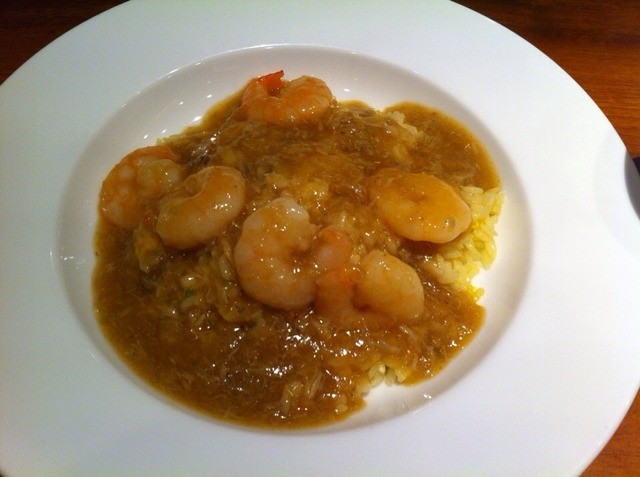「上海蟹ミソ、上海蟹肉、エビのあんかけチャ-ハン」も絶品炒飯のひとつ。パラパラの炒飯の上から濃厚な蟹味噌入りの餡がたっぷりかかった豪華版で、ぷりぷりの海老もたっぷり。