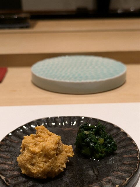 ・余市のあん肝と奈良漬、春菊