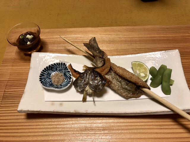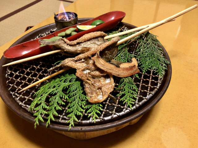 さて、つい前置きが長くなってしまったが、料理の方も美味しく盛り付けも美しいく魅了される。地のものを使った料理は、凝り過ぎず季節感ある皿ばかり。丁寧に養殖されたヤマメ、盛り付け豪快さもいい。こだわりの卵の黄身のオレンジが鮮やか!