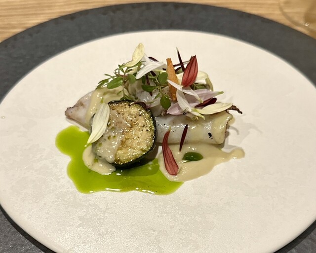 来店してみると、店内の落ち着いた雰囲気も、接客もいい感じ。メニューはあくまでも素材のみで想像力を掻き立てられる。鹿児島県内の食材をキーにした工夫と技術を感じる料理を、一品毎にじっくり丁寧にいただく。味はもとより、素敵な食器に色彩鮮やかな盛り付けが視覚からも、口にすれば食感と香りでも楽しめる。意外性もある食材の使い方もワクワクして、特にデザートのふきのとうのアイスには驚いた。最後のドリンク迄美味しく楽しく過ごせた。
