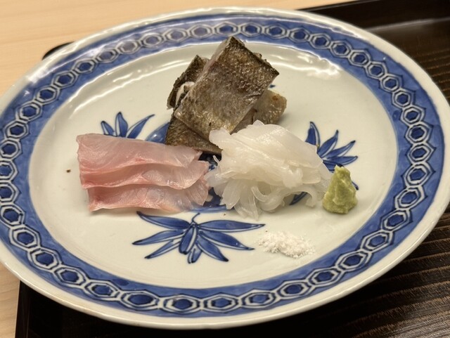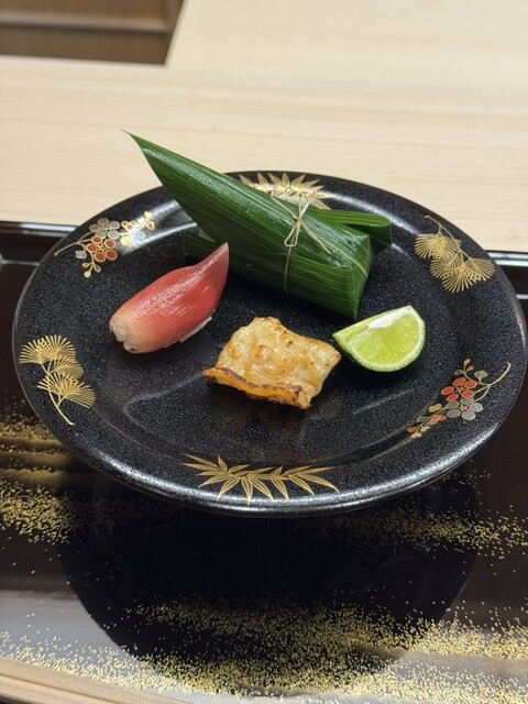 ・小鯛笹船寿司、花茗荷のお寿司、カマス一夜干し七味