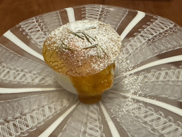 ・鯉(井戸の湧き水で泥を吐かせた)を5日熟成してミルフィールにして焼いたもの、鰹と昆布の一番出汁/しじみだし、すざかそうめん