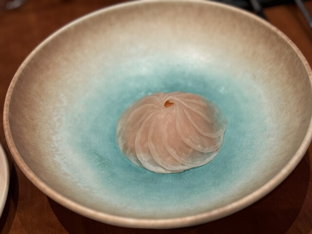 ・ラビオリ/クルルジョニス、凍った発酵白菜、純血長野黒豚、ゆず生姜ポルチーのオイル、昆布だし、酒粕ソース