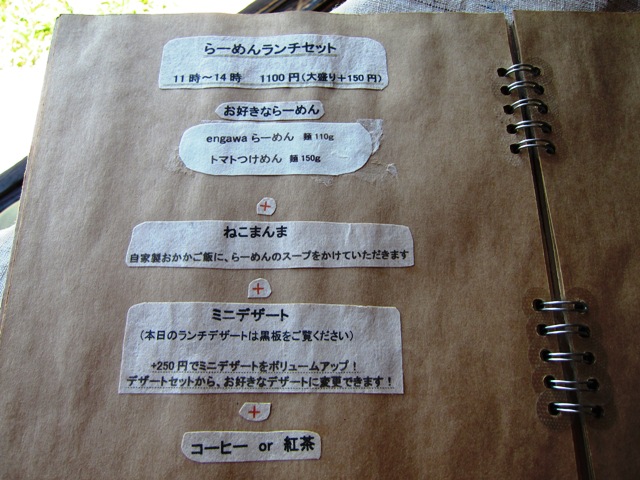 内容は、engawaラーメン/ねこまんま/ミニデザート/ドリンク