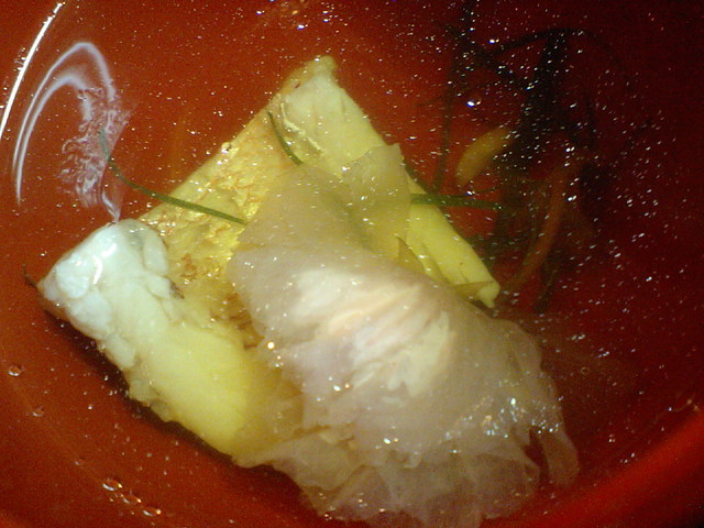 具材は百合根と白身魚で上には三つ葉