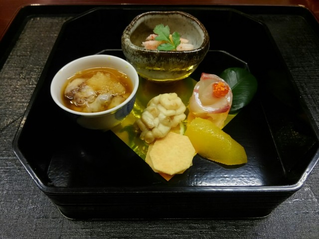素材の旨味で喰う料理や酒のあてに寄せた味わいのもの、蟹と河豚は合わせた事無ぇしあかんやろと思ぅたがこれが分かりやすく旨い、釜飯はたどり着かず土産にしてもろたわ