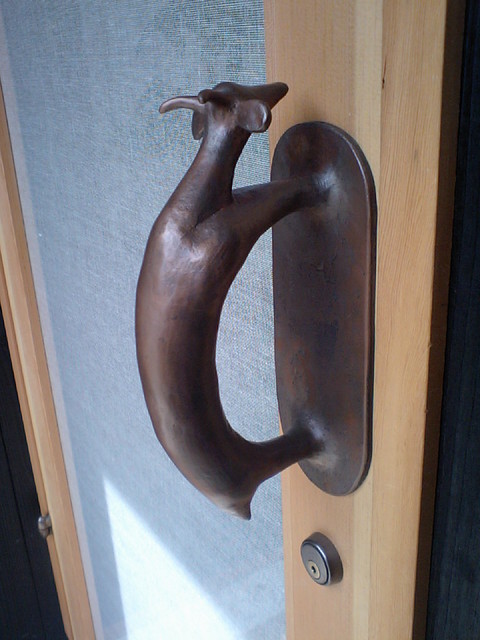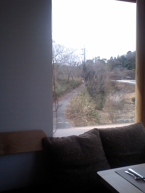 鹿の形をしたハンドルの付いた扉を開けると、眼前にはガラス越しの田舎ビューが広がります
