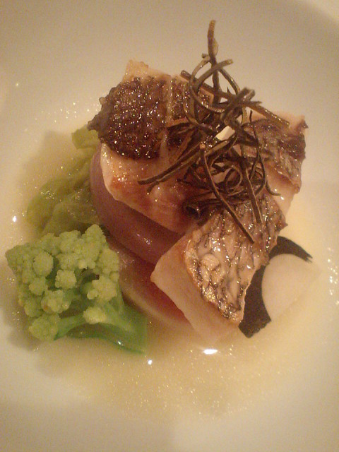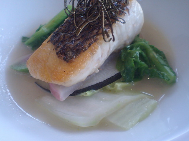 真鯛は和で言う松笠、火の入れ方が良く皮目が旨い、素揚げ昆布の食感も楽しかった、そして野菜の使い方(3種の大根)が面白くそして驚くほど美味しい!