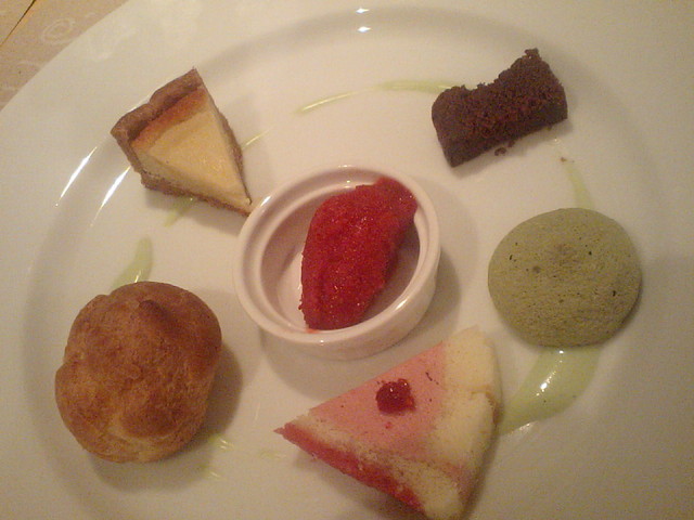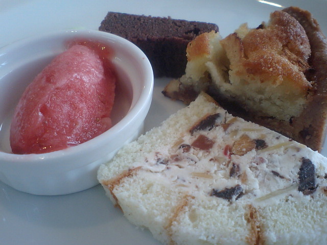 ソルベ(苺)、フォンダンショコラ、タルト(林檎)、ズコット