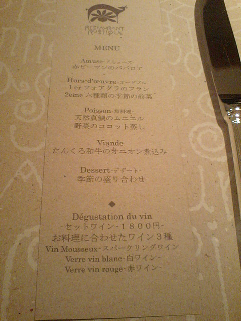 ランチタイムとの違いはオードブルが2eme有り、Viande有り、デセールが6種
