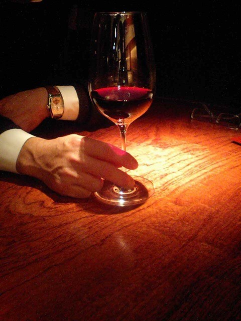 グラスにはルビー色のワイン、香りは少々弱いがベリー系(甘い)のような感じです