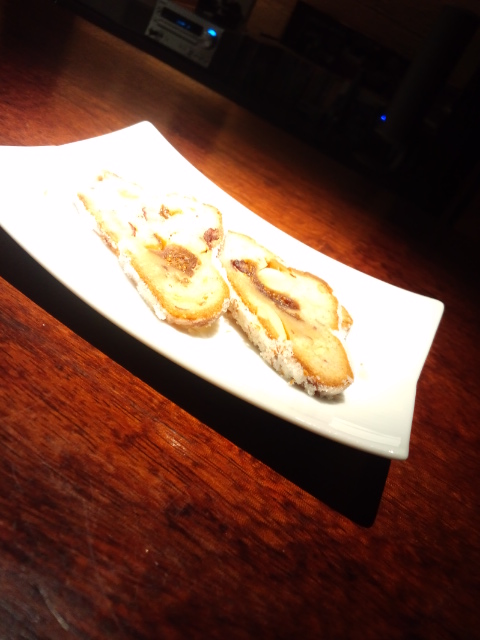 いただいたワインはドイツの白、そしてアミューズにはスライスされたシュトレン3種!