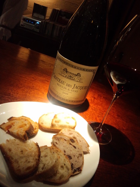 とりあえず粋な赤をいただきながらスライスされたバゲットをいただく