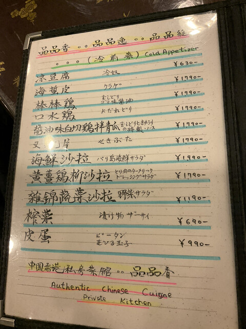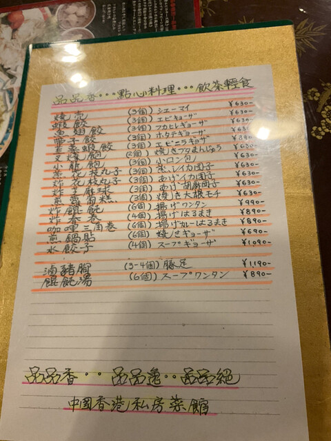 料理名の漢字での記載もどうみても香港っぽい。