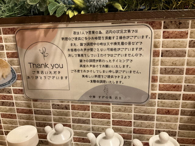 ディナー営業はワンオペなので、時に行き届かないことへの張り紙に、店主さんのお人柄がよく表れている気がする。