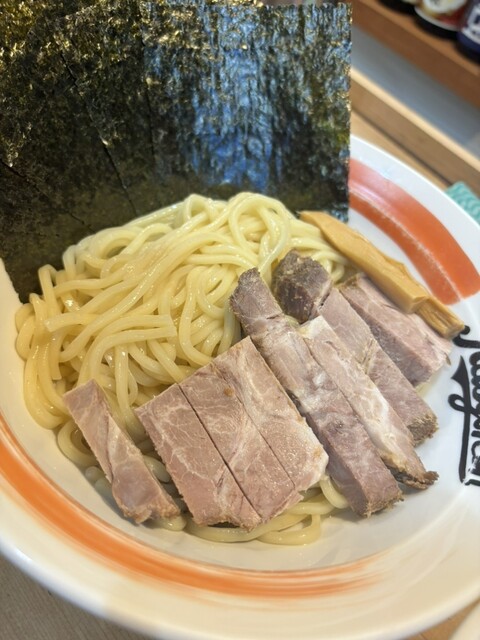 海苔が麺の上ではなくて、つけ汁の方に変わっていました。