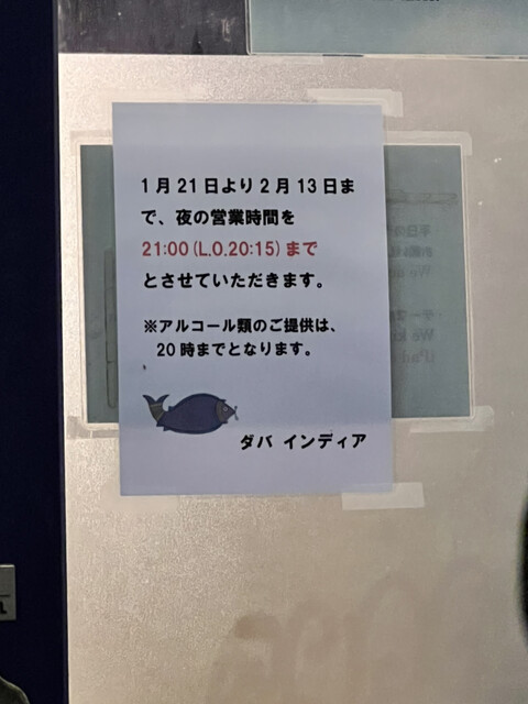 アルコール提供は20時まで。