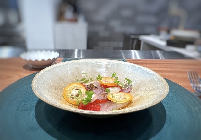 *アカハタは皮目を軽く炙り、厚めにスライスされているので旨味を感じますね。