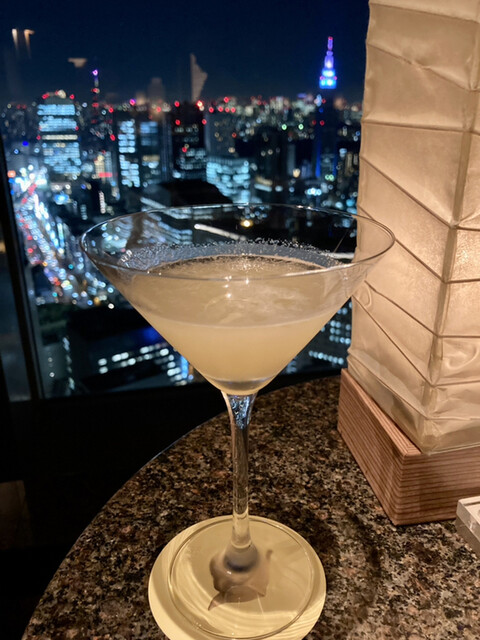 2時間飲み放題に軽い食事がついて一人税サ込みで約8千円。これ、昔に比べると値上がりしたけど、激安。NY Gillは食事だけでも予算1万円から。お酒を飲もうと思った日にはもう…こちらのほうが階数が低いけど、それでも高層階だし、眺めは最高、レストランではなくバーだけど、雰囲気もいいし、ドリンクがとにかく豊富、手の込んだカクテルもあって素晴らしいのだ。本日のメニュー。前菜プレートに3段プレートの軽食がつく。