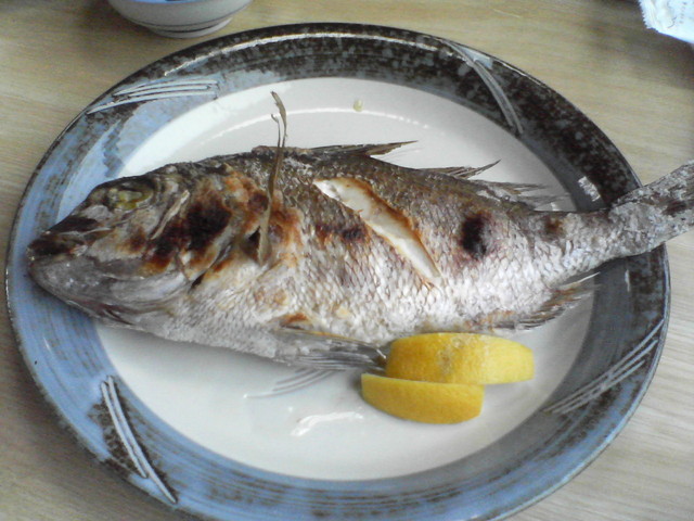 朝からでかい鯛の塩焼き!!