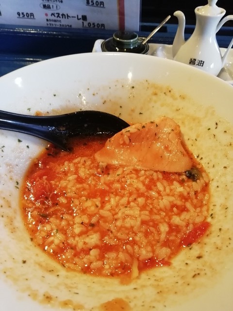 麺食べ終わってライス投入してリゾット風にしてみました・・・