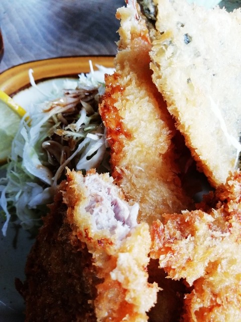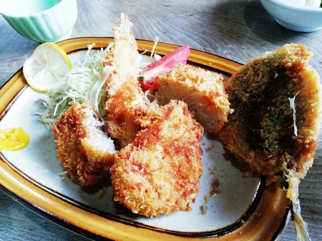 ミックスフライの内容は、ヒレカツ・コロッケ・エビフライ・アジフライ