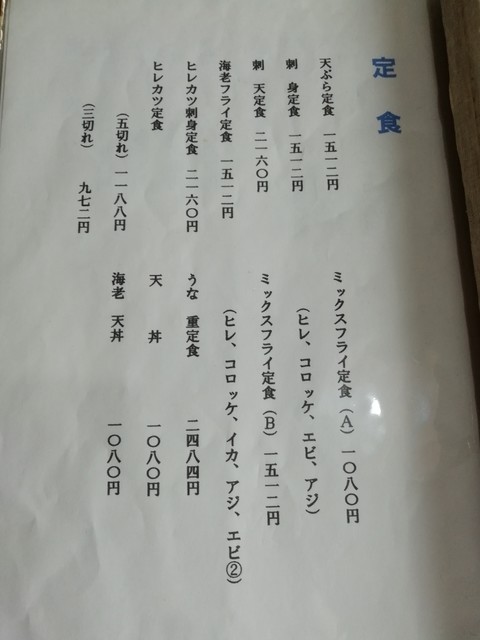 するとメニュー表のミックスフライ定食(A)1080円(税込)が目につく