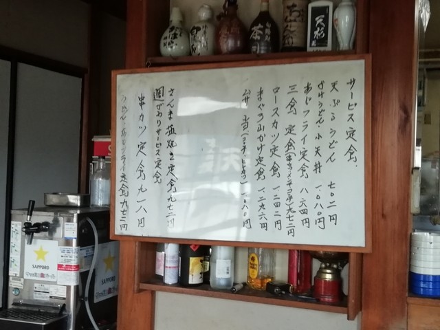 メニュー表以外にもホワイトボードにサービス定食と書いた