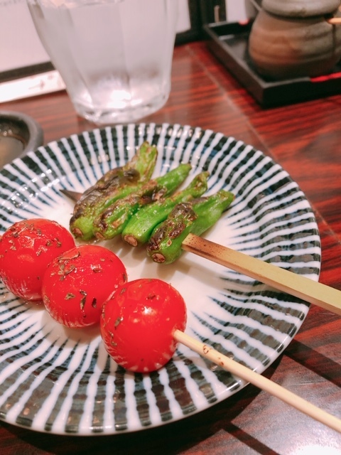 このあと焼鳥・野菜串コース8本を。