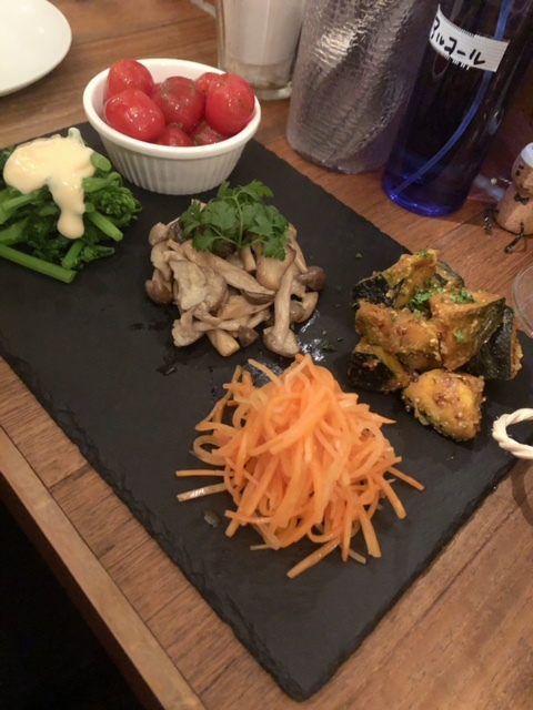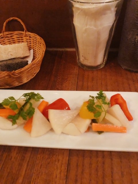 注文しておいた有機野菜のクリュディテ。タイミングよく出てきた。わざとかな?w