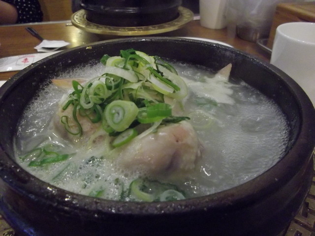 スープは程良く塩味が付いてる。サムゲタンは本来味付けしないと聞いていましたが、最近はそうでもないようです。