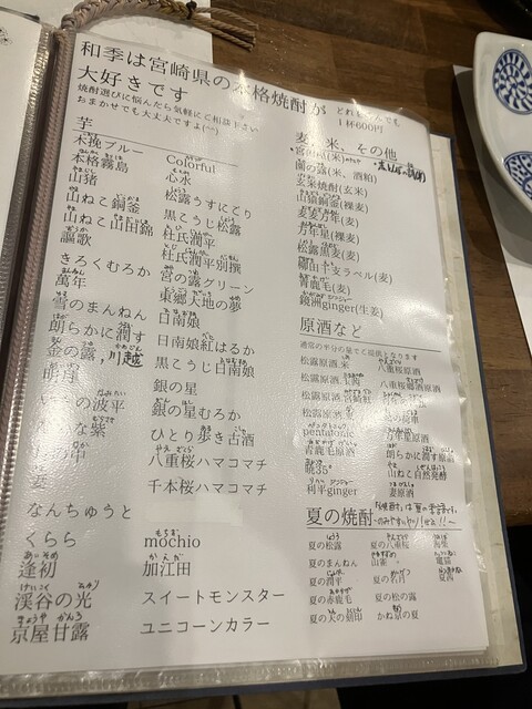 250130木 宮崎 美酒&肴 和季 ドリンクメニュー