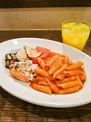 前菜のセットが付いたランチと迷いましたが、平日限定のパスタのみで。