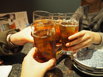 乾杯はお酒ではなくウーロン茶で。