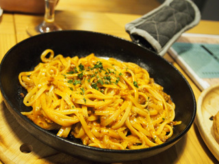 きしめんのようなフィットチーネと相性が良いです。