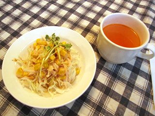 サラダとスープ。