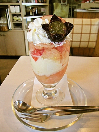 奥にある季節のパフェ(アメリカンチェリーのパフェ1,000円)は白雪姫さんが食べました。