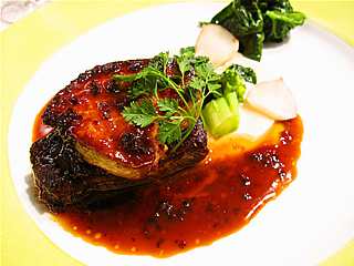 国産牛フィレ肉とフォアグラのポワレモリーユのソース
