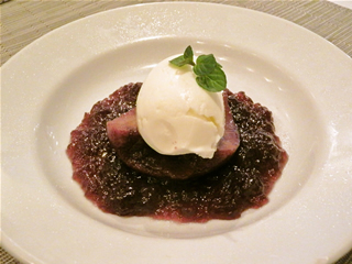 洋ナシの赤ワインコンポート牛乳アイス。