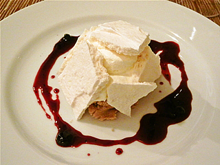 私がメインで食べた、さかさまモンブランブルーベリーソース。