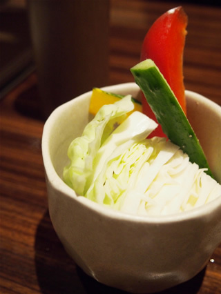 水菜のサラダが添えてあり、にんじんドレッシングがおいしい。