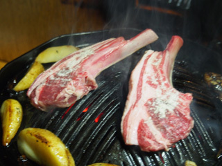 画像奥はレアで食べる生ラム、画像手前のショルダーステーキ