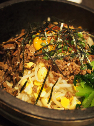 そぼろと野菜がたっぷりの石焼ビビンバです。