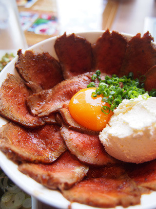 ローストビーフ丼は赤身で旨みが凝縮したお肉。