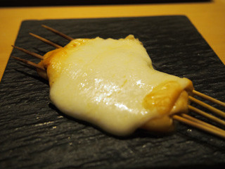 メニューを見て気になり追加注文したモッツラレラチーズを燻製にした串焼き。